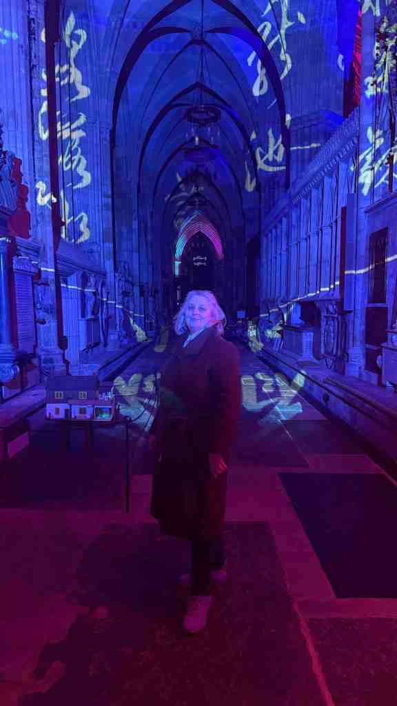 I was still sporting the ‘soup strainer’ (see below) for our first little trip in 2026. It was the same thing we did last year, and we went to Exeter Cathedral to see the light show. The theme this year was books and literature. I think I preferred this one, especially as we were first in the queue and pretty much got to see the whole thing without too many other humans about. We did decide that two years in a row is enough, though, and won’t be going back next year.